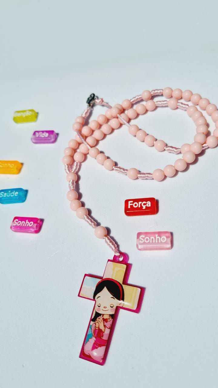 TERÇO CONTAS FOSCA ROSA 6MM CRUZ ACRILICA ACABAMENTO RESINA , FECHO BANHO NIQUEL