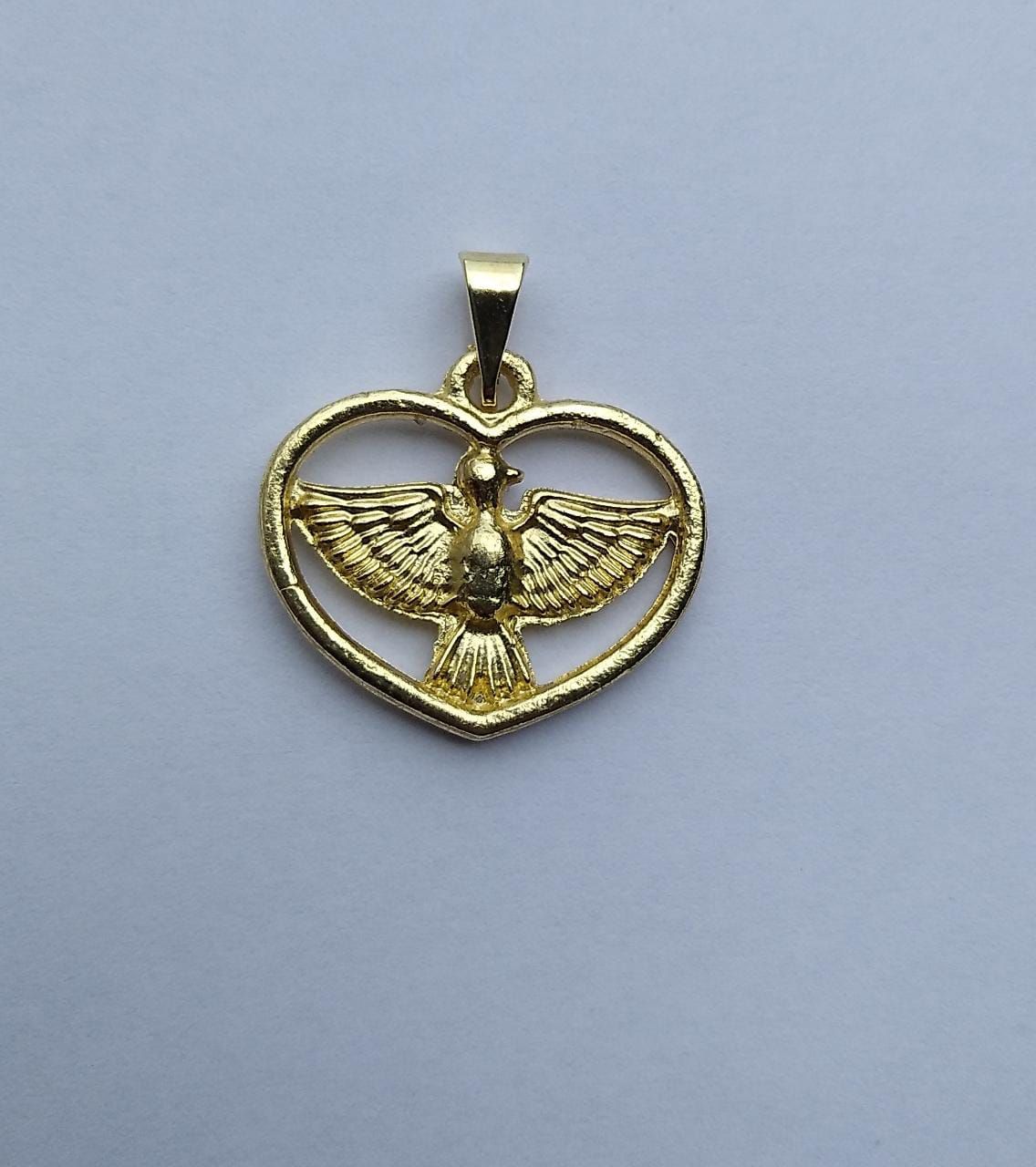 MEDALHA EM METAL FORMATO ESPIRITO SANTO CORAÇAO BANHO DOURADO