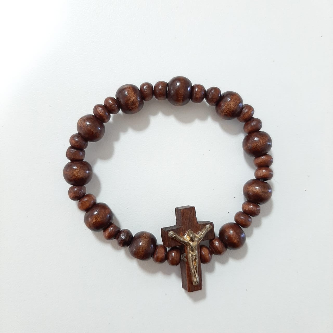 EM MADEIRA 8MM MARROM MADEIRA 6MM MARROM FIO SILICONE CRUZ MADEIRA C/ CRISTO