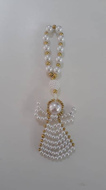 DEZENA CONTAS DE PEROLA 8MM ENTREMEIO CONTAS DOURADAS 04MM PEROLA ANJO NA PONTA TODO EM PEROLA