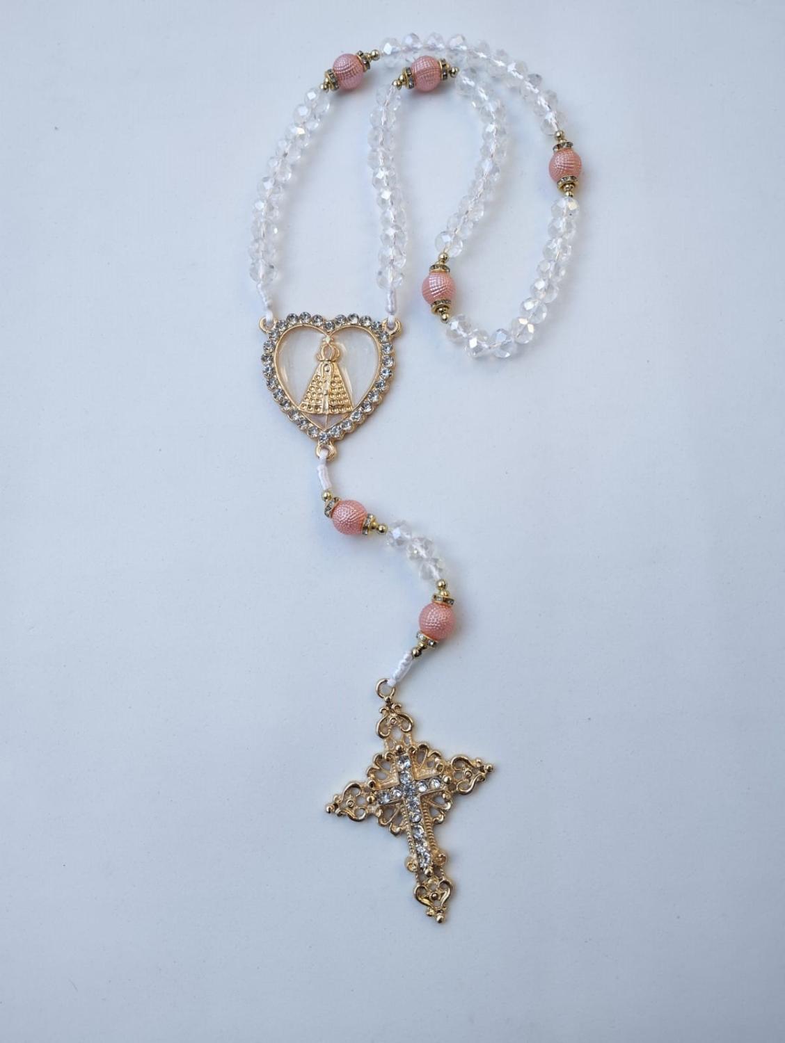 CRISTAL 8MM TRANSPARENTE PAI NOSSO BOLA CASCUDA ROSA FIO CETIM BRANCO TREVO CORAÇÃO APARECIDA STRASS PEROLADO CRUZ STRASS