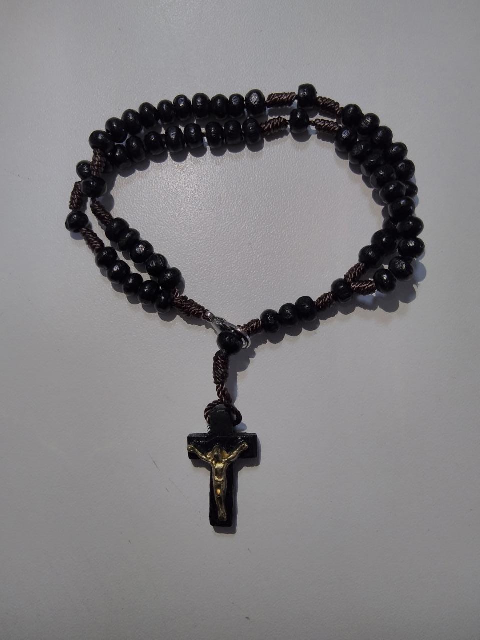 CONTAS EM MADEIRA 4MM PRETA FIO PRETO CRUZ MADEIRA PRETA FECHO