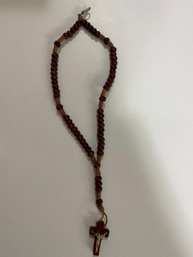 CONTAS EM MADEIRA 4MM VINHO FIO MARROM CRUZ MADEIRA VINHO FECHO