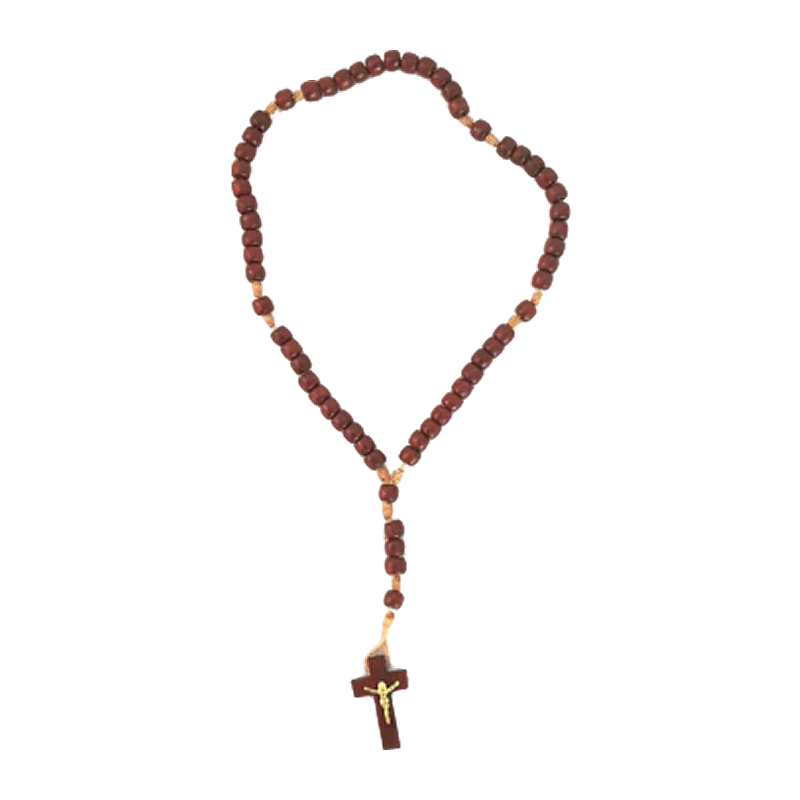 CONTAS EM PAU BRASIL 4MM FIO MARROM CRUZ PAU BRASIL MINI C/ CRISTO